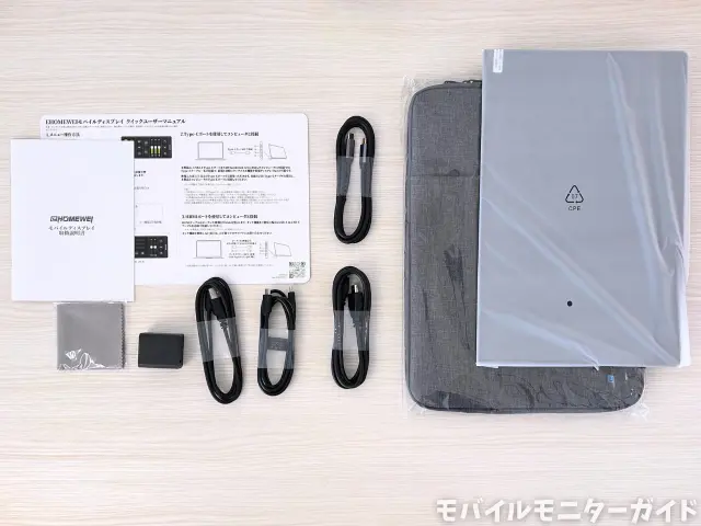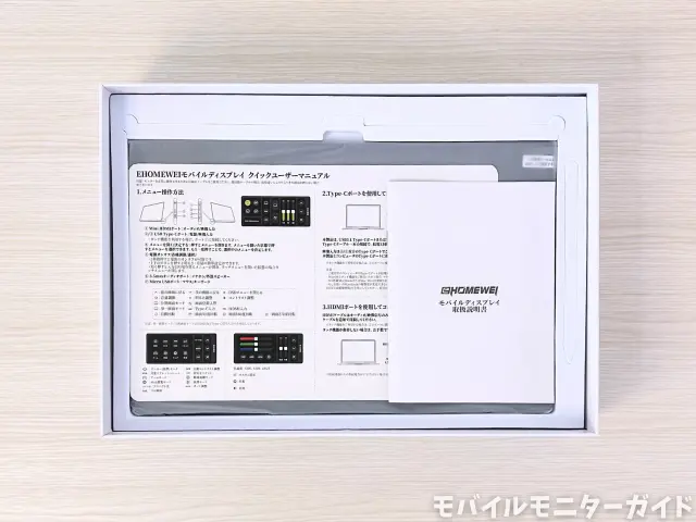 続いて取扱説明書などのドキュメント類があり、その下にモバイルモニターモニター本体が入っています。