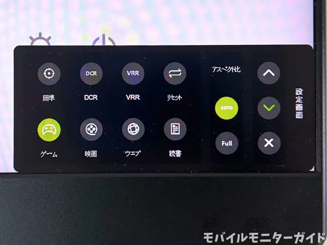また、LQHG-156NWには4つの表示モードがあるのですが、「ゲームモード」以外でSwitch 2を表示すると、なぜか解像度が720×480とさらに落ち、表示も縦長になってしまいます。