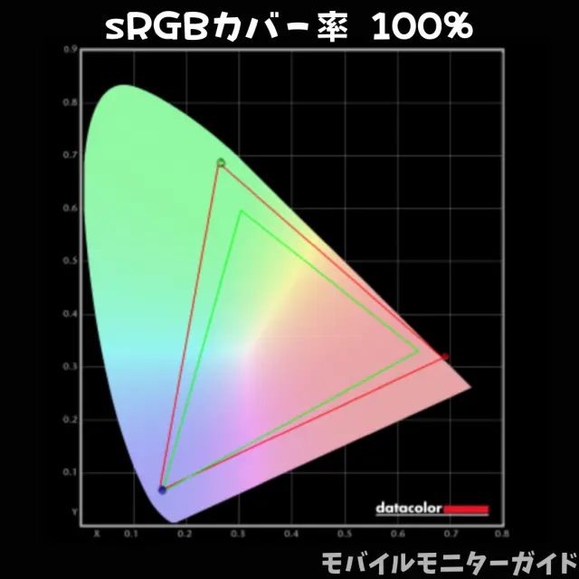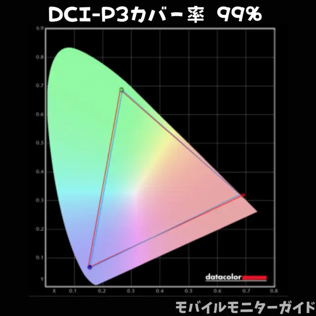 その結果、sRGBカバー率は100%、DCI-P3カバー率は99%でした。ゲームの世界観を文句なしの綺麗さで楽しめる水準です。