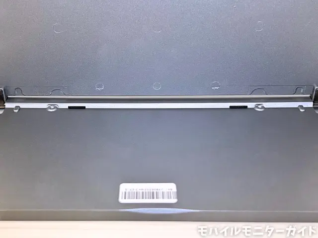 背面の様子です。下半分は最大90度まで開くスタンドになっています。