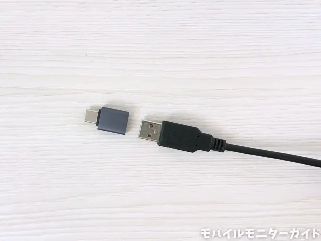 S123のハブ機能付きポートはUSB-Cであるため、モニター付属のUSB-C to Aアダプターでポートの形状を合わせてから接続します。