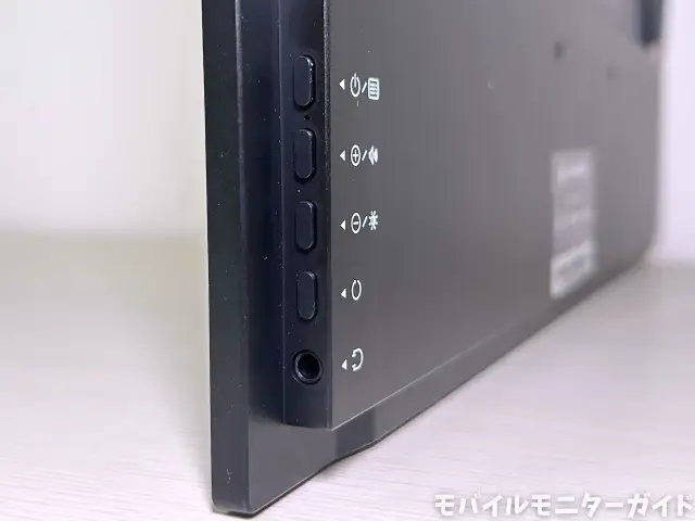 上から電源ボタン、メニュー操作用の+-ボタン、戻るボタン、3.5mmイヤホンジャックがあります。