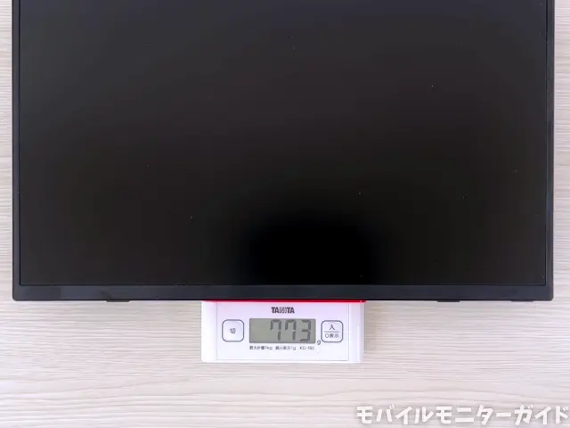 本体の重さを測ってみると、773gでした。バッテリー内蔵であることを考えれば、十分に軽い方ではあります。
