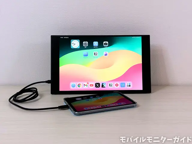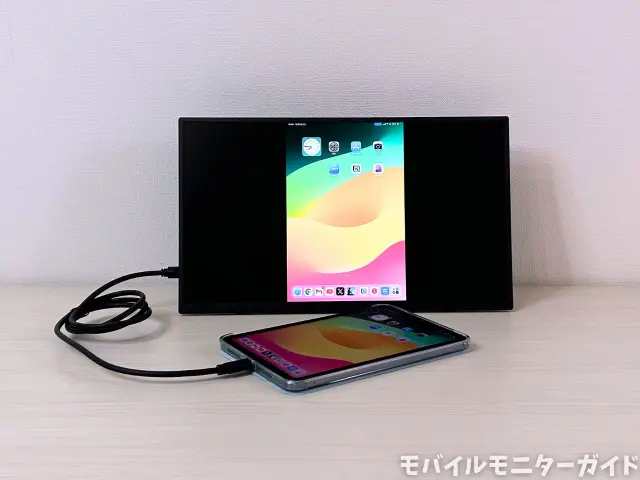 iPad miniを付属のUSB-Cケーブルで接続してみると、無事に映像が表示されました。