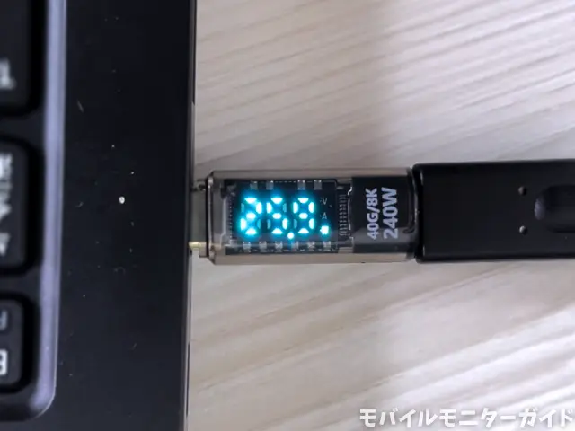 P156AHBWにはバッテリーが内蔵されており、モニターを動かす分に加えてバッテリーの分まで電力を要するためか、PDパススルー機能を使うには高出力な電源アダプターが必要なようです。