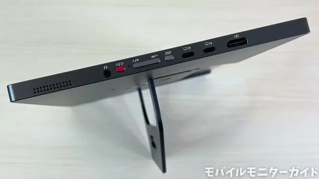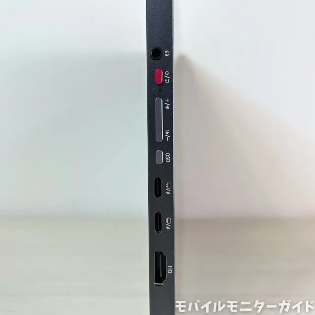 上から3.5mmイヤホンジャック、電源ボタン、メニュー操作用のボタン類、USB-Cポートが2つ、HDMIポートが配置されています。