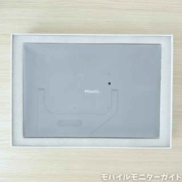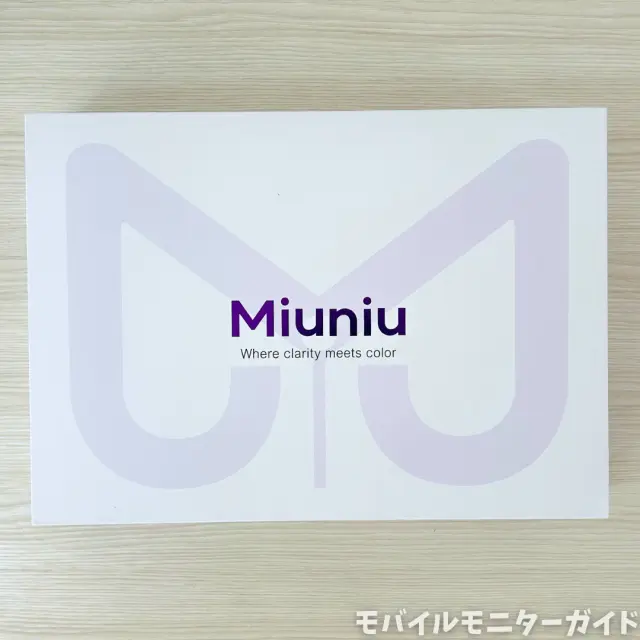 外箱は、Miuniuのロゴが印刷されたしっかりした作りです。側面にはサポートの連絡先も書かれていて安心できます。