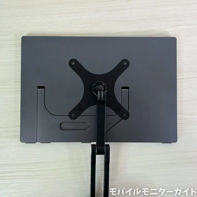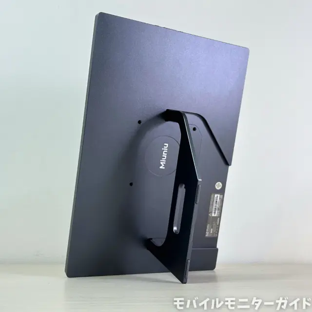 中央にはMiuniuのロゴがあり、その周りにVESA規格のモニターアーム用のネジ穴が4つ搭載されています。