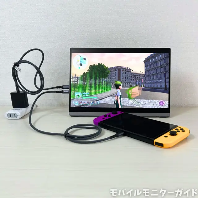 ただし、モニターに電源を挿す必要はあります。付属の電源で接続できましたが、うまくいかない場合は、Switch純正アダプターや高出力なアダプターを使うと良いです。